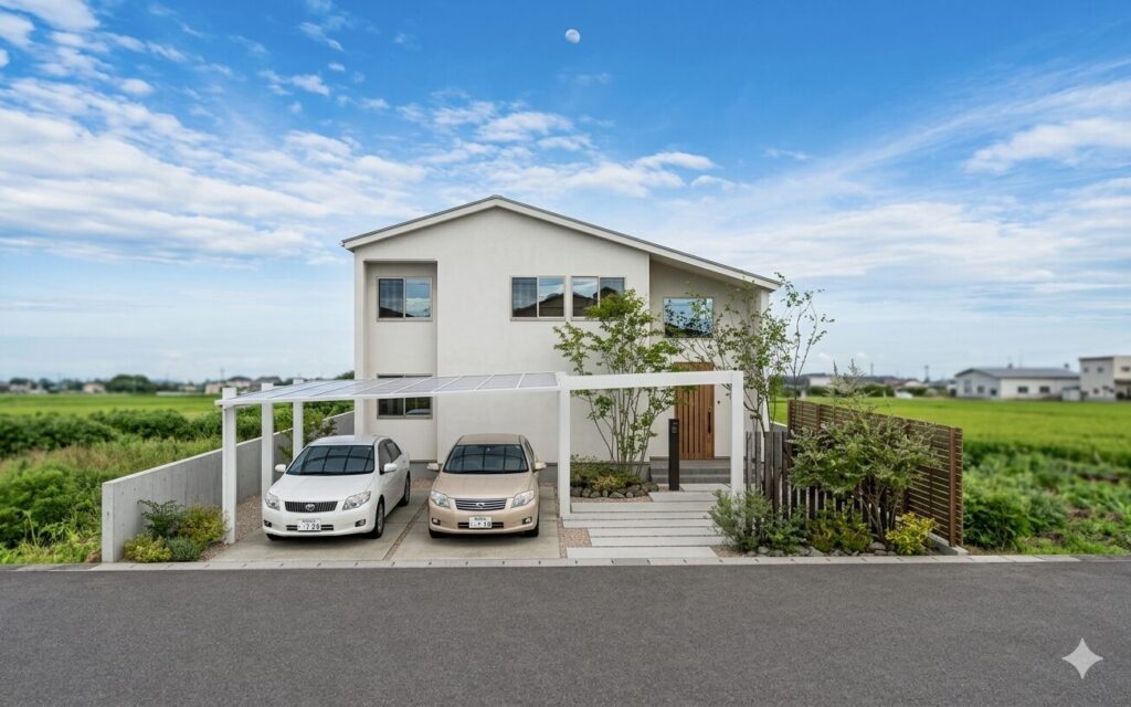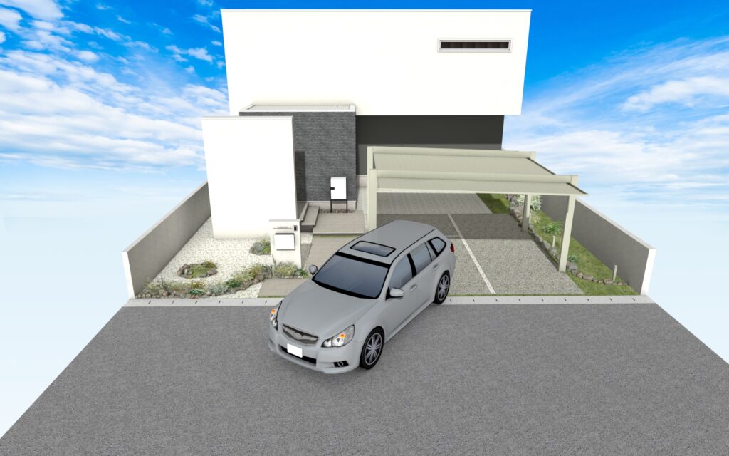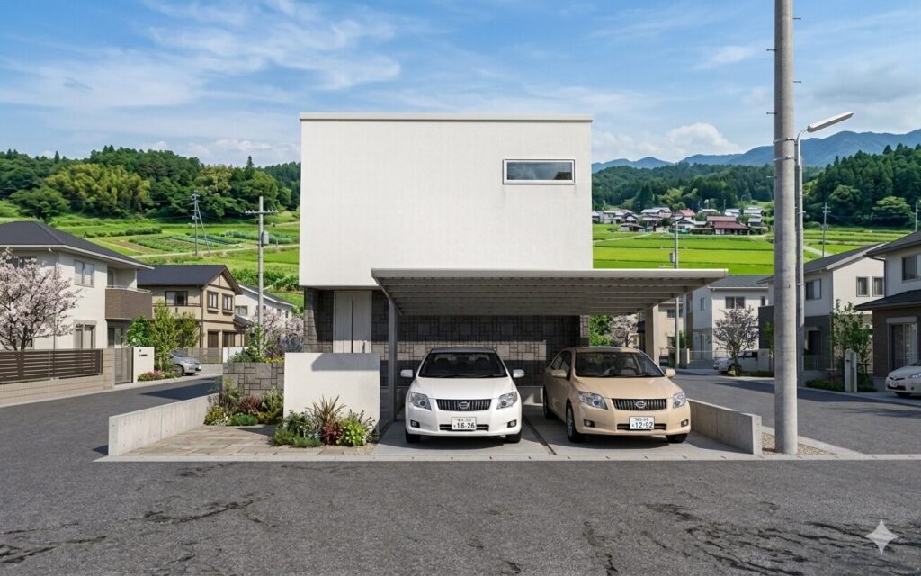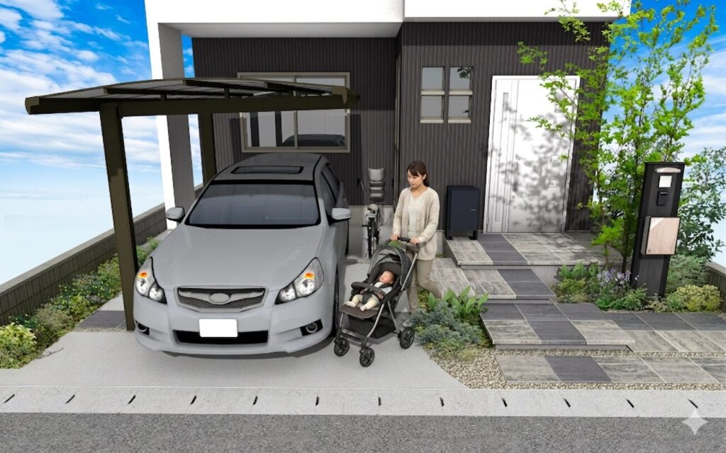 - メリット: 敷地の両端に柱が立たないため、車の横を通り抜けて玄関へ向かうアプローチ動線を、左右どちらでも自由に、広々と確保できるようになります。