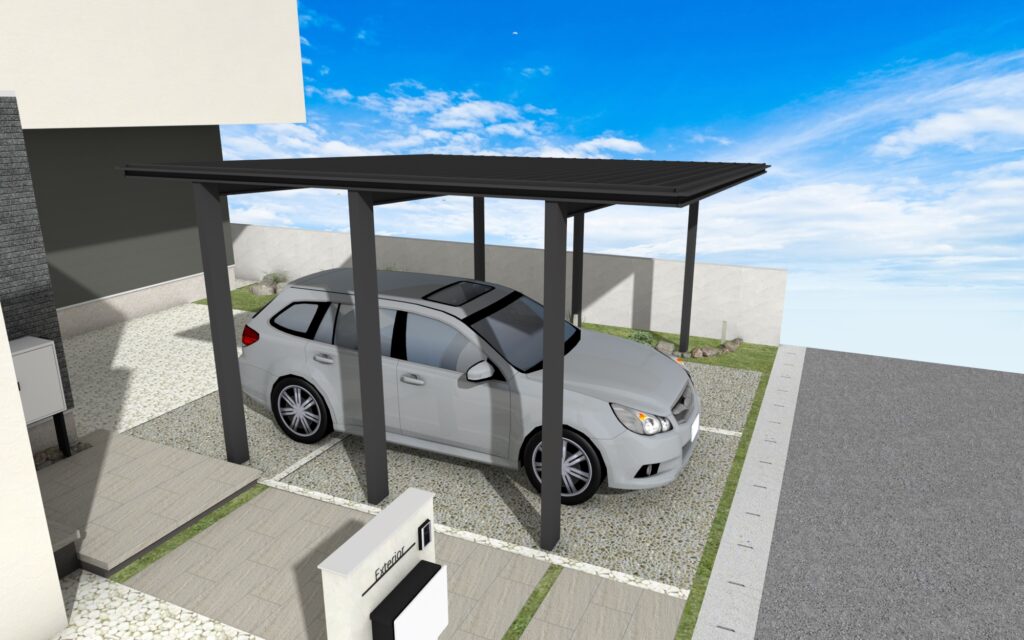 - メリット: 前面に柱が一切ないため、車の入出庫時のスイング幅を気にする必要がありません。また、ドアの開閉や人の通り道を遮るものがなく、アプローチとの兼ね合いが難しい敷地で最強の解決策となります。