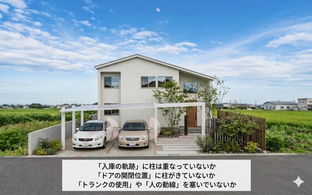 今の所有車だけでなく、将来的に買い替える可能性のある車種のサイズまで見越して、この2つのポイントをクリアする位置に柱を据えること。これこそが、数十年続くストレスフリーなカーライフを手に入れるための最短ルートです。