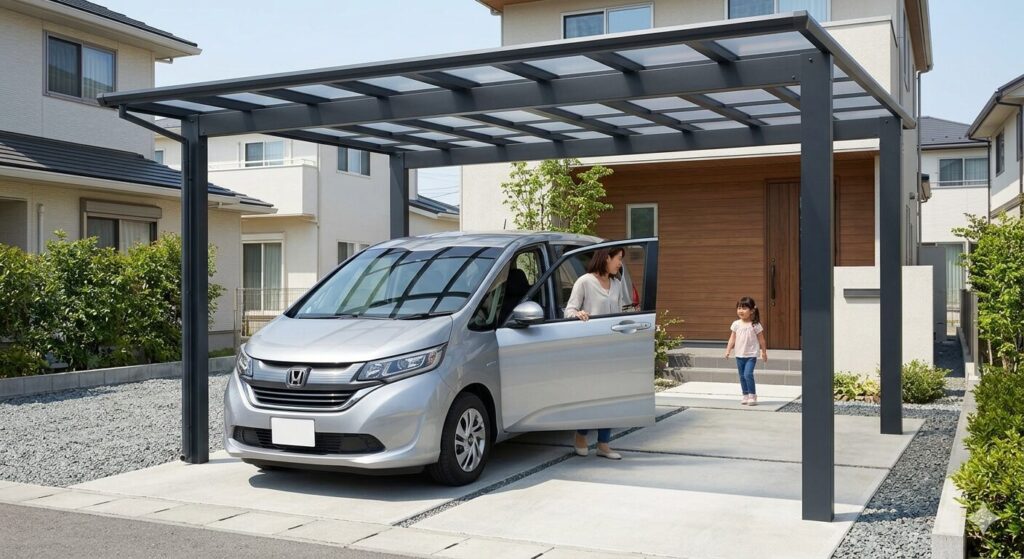 - 設計のコツ: 車の間に柱がくるため、ドアの開閉位置に柱が重ならないよう、設置位置の前後の微調整が不可欠です。また、ゆとりを持って乗り降りできるよう、間口は広めのサイズを選ぶのが正解です。