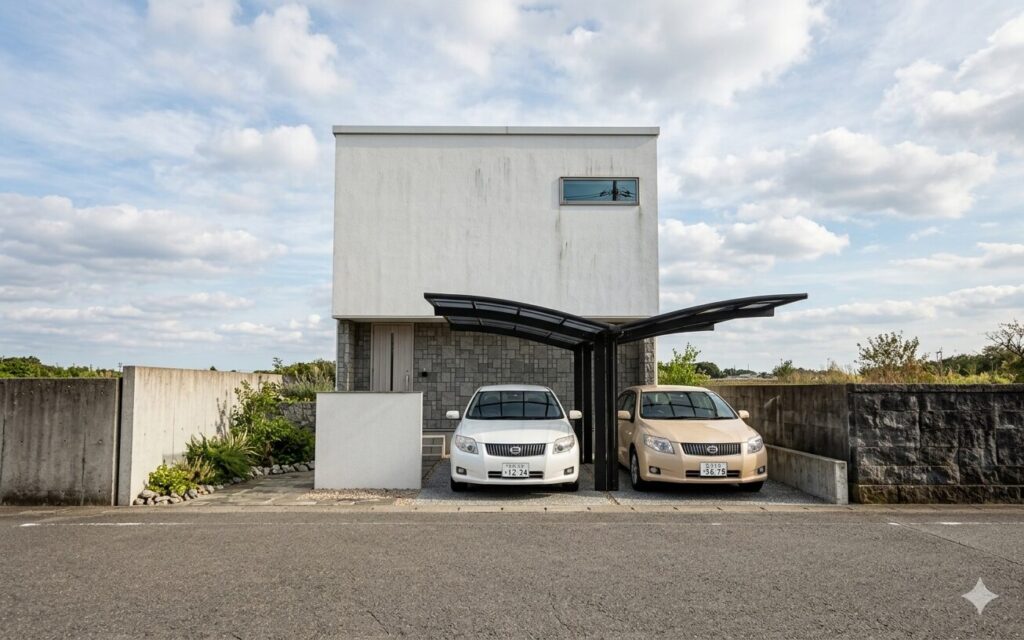 - 設計のコツ: 駐車スペースをまたいでゲートのように見せることができるため、外構のデザイン性を高める効果もありますが、部材が大きくなるためコストは上昇傾向にあります。