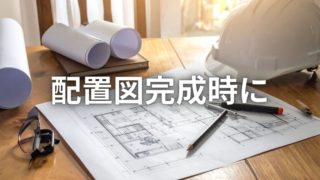 外構工事の相見積を取るベストなタイミングその②は、「配置図が完成した時点」です。なぜなら、この段階で建物の位置や基礎が確定し、設計GL(グランドライン)や地盤の高さなど、外構に必要な基礎情報が出揃っているからです。これにより、仮であっても現実的な外構プランを組み立てやすくなり、各社に同じプランで見積を 依頼することが可能になります。また、建物計画に支障を与えることなく、外構費用の相場感を早期に把握できるため、全体予算の調整にも役立ちます。外構の比較は、条件をそろえることが前提となるため、配置図が完成した時点で動き出すのが、効率と精度の両面で最もおすすめです。