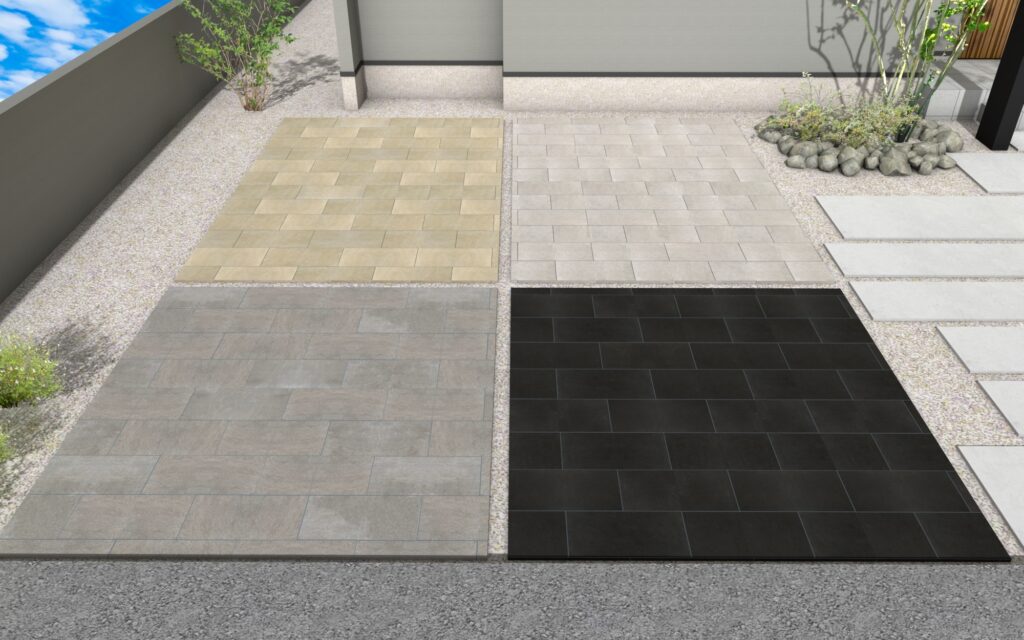 厚み20㎜タイルを使った車両対応の駐車場。通常の土間コンクリートの施工に加えてタイルを施工したものがタイル駐車場になります。